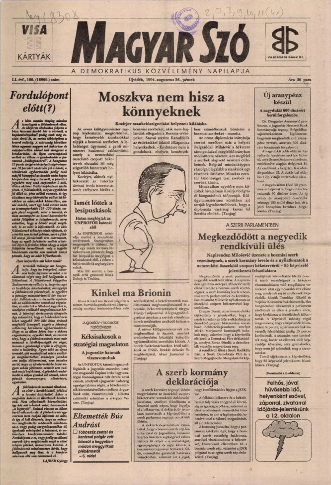 Magyar Szó, 51. évf. 1994. augusztus 26. 180. sz. 1–16. oldal