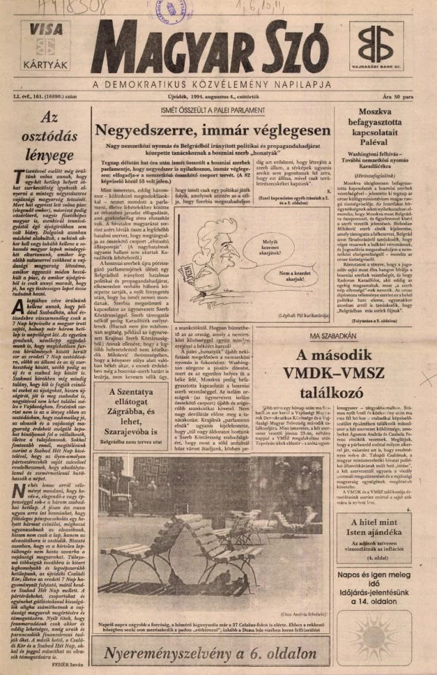 Magyar Szó, 51. évf. 1994. augusztus 4. 161. sz. 1–16. oldal