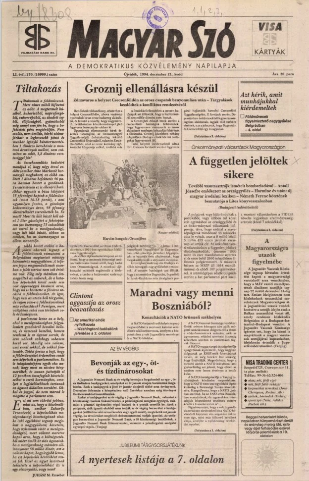 Magyar Szó, 51. évf. 1994. december 13. 270. sz.
