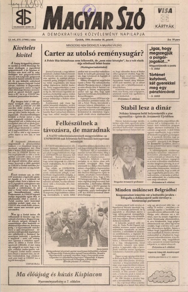Magyar Szó, 51. évf. 1994. december 16. 273. sz. 1–16. oldal