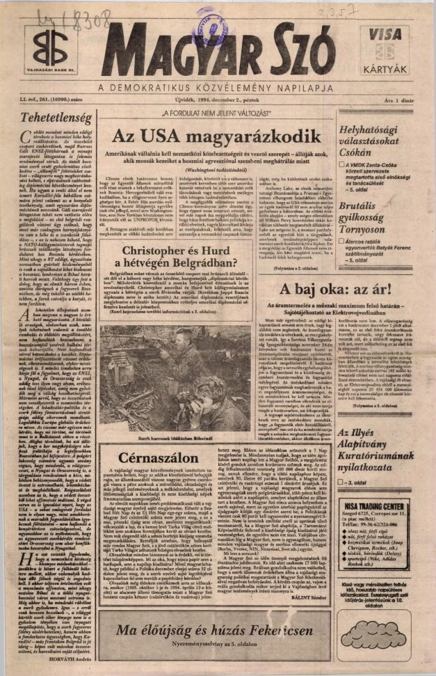 Magyar Szó, 51. évf. 1994. december 2. 261. sz. 1–16. oldal