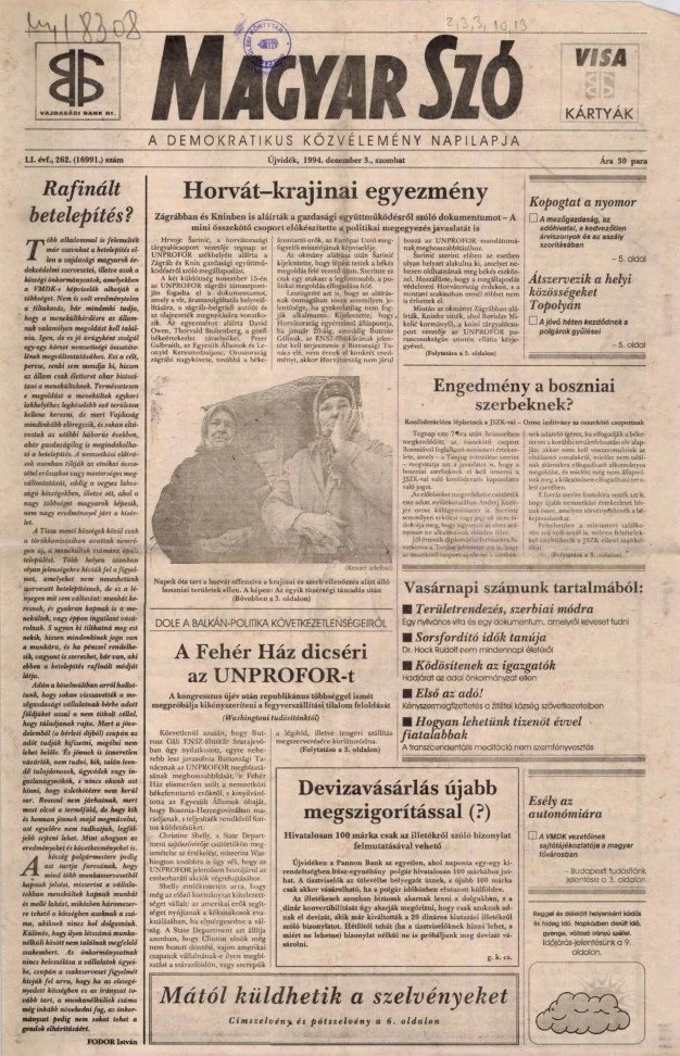 Magyar Szó, 51. évf. 1994. december 3. 262. sz. 1–16. oldal