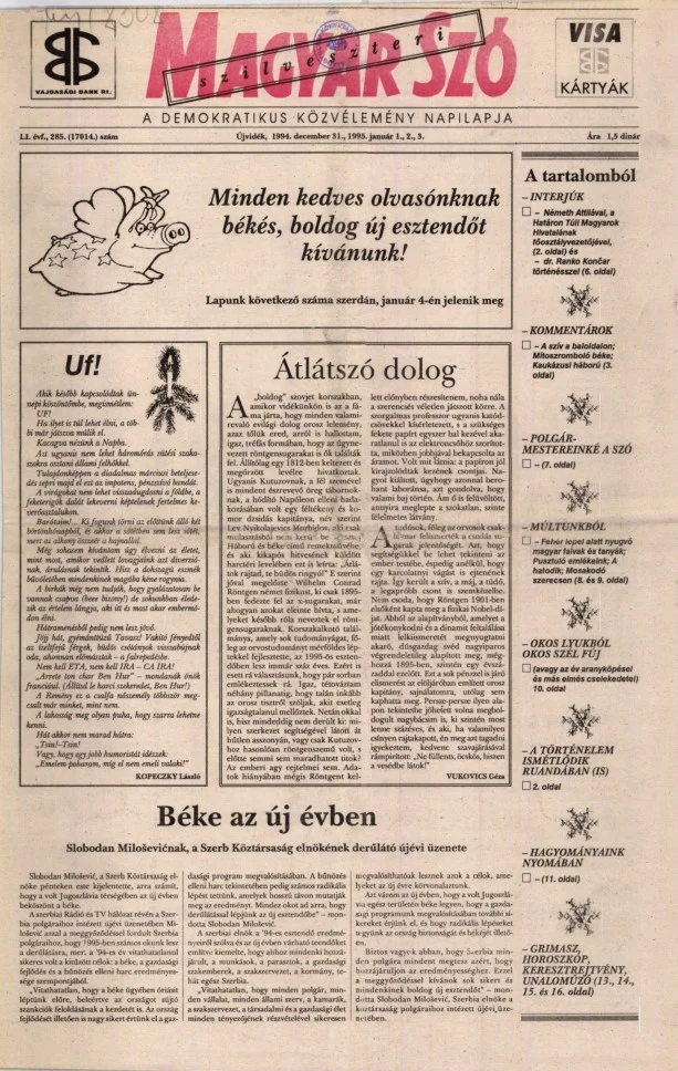 Magyar Szó, 51. évf. 1994. december 31. – 1995. január 3. 285. sz.