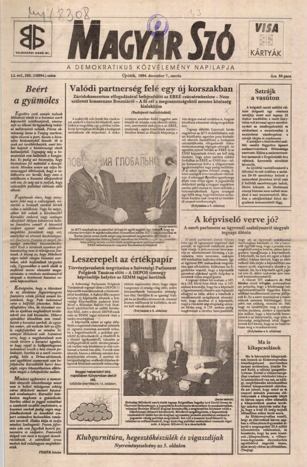 Magyar Szó, 51. évf. 1994. december 7. 265. sz. 1–16. oldal