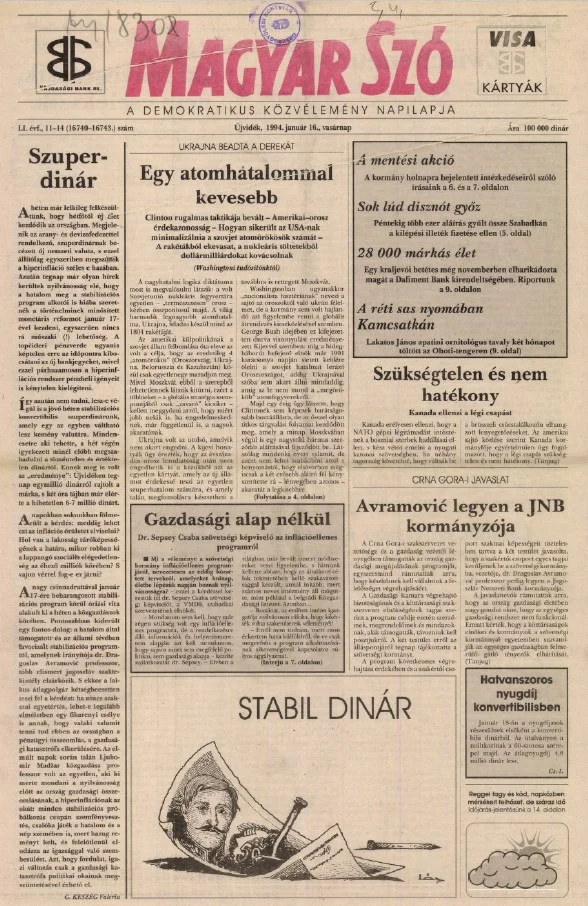 Magyar Szó, 51. évf. 1994. január 16. 11–14. sz. 1–24. oldal