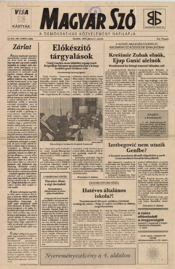 Magyar Szó, 51. évf. 1994. június 1. 106. sz. 1–16. oldal