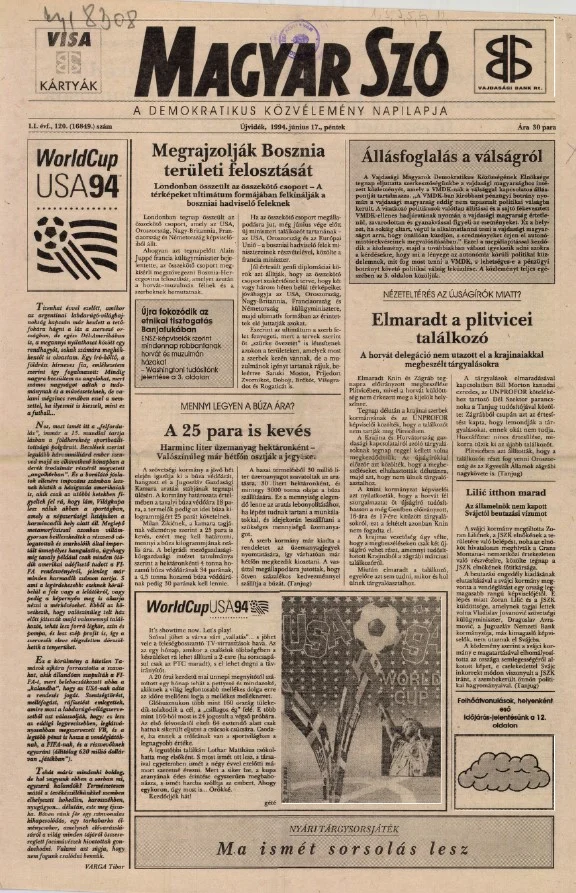 Magyar Szó, 51. évf. 1994. június 17. 120. sz. 1–16. oldal