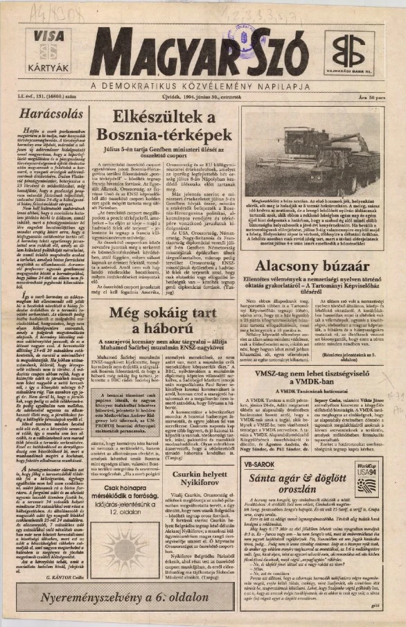 Magyar Szó, 51. évf. 1994. június 30. 131. sz. 1–16. oldal