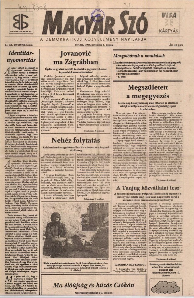 Magyar Szó, 51. évf. 1994. november 4. 240. sz. 1–16. oldal