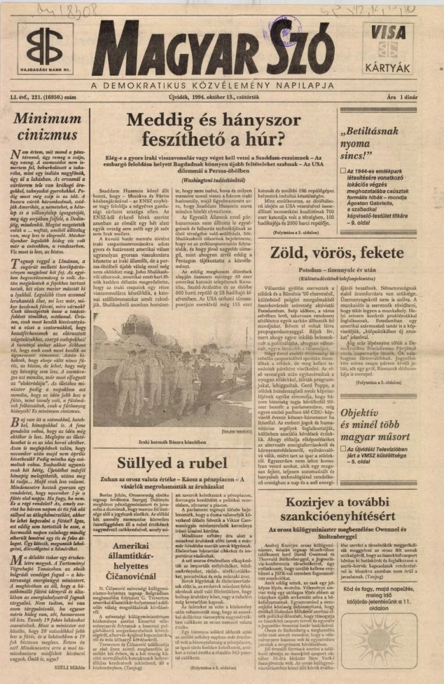 Magyar Szó, 51. évf. 1994. október 13. 221. sz. 1–16. oldal