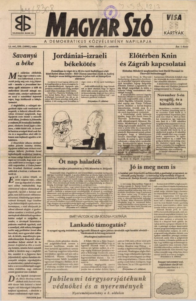 Magyar Szó, 51. évf. 1994. október 27. 233. sz. 1–16. oldal