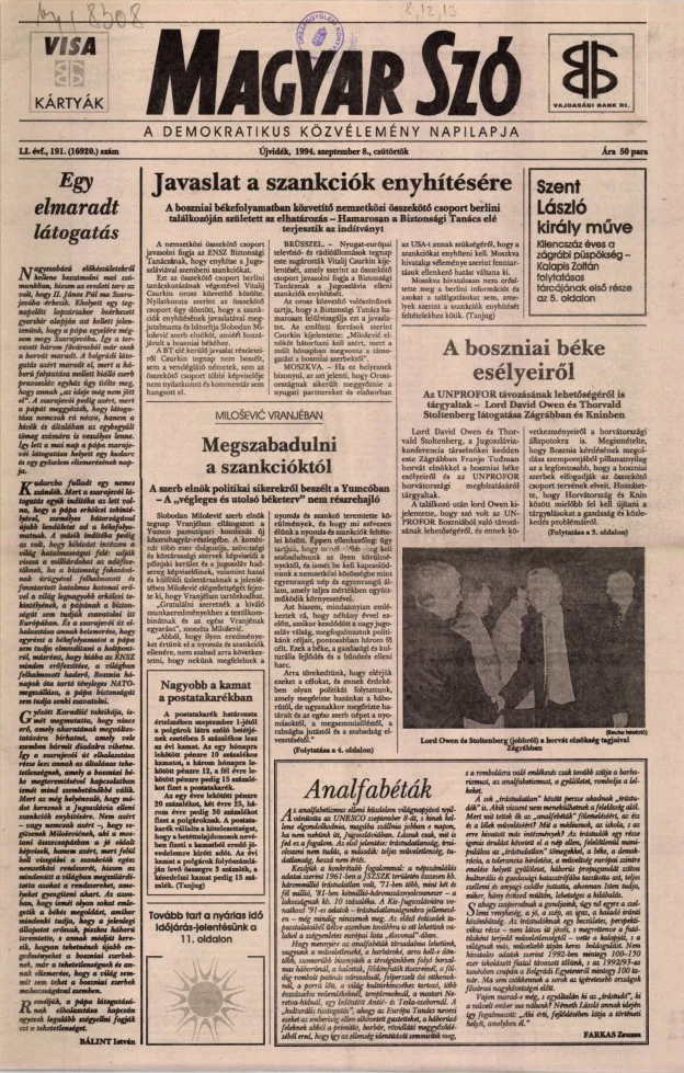 Magyar Szó, 51. évf. 1994. szeptember 8. 191. sz. 1–16. oldal