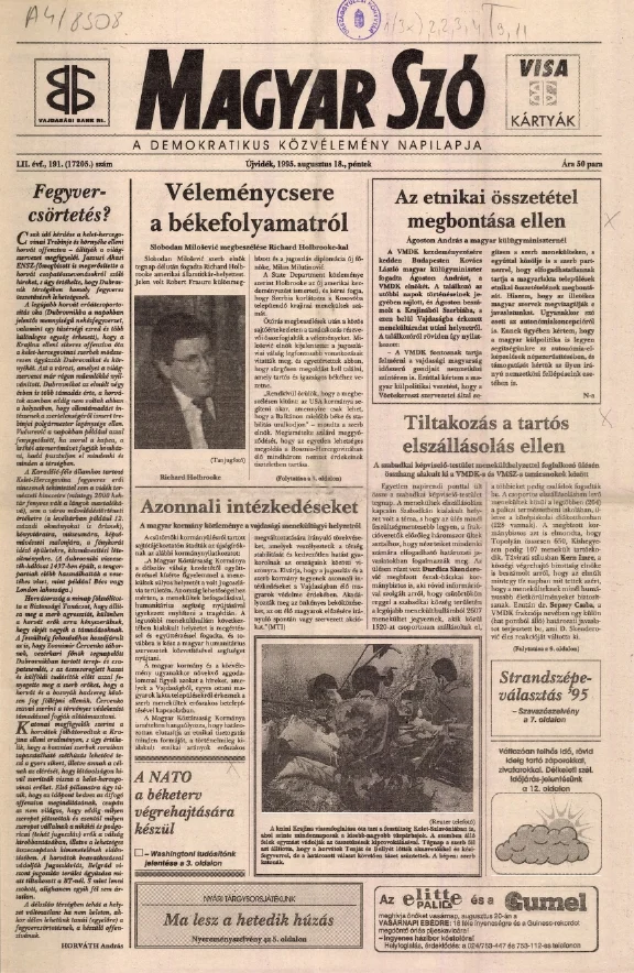 Magyar Szó, 52. évf. 1995. augusztus 18. 191. sz. 1–16. oldal