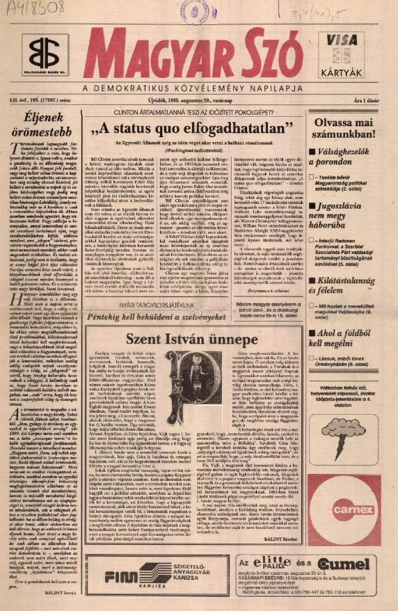 Magyar Szó, 52. évf. 1995. augusztus 20. 193. sz. 1–24. oldal