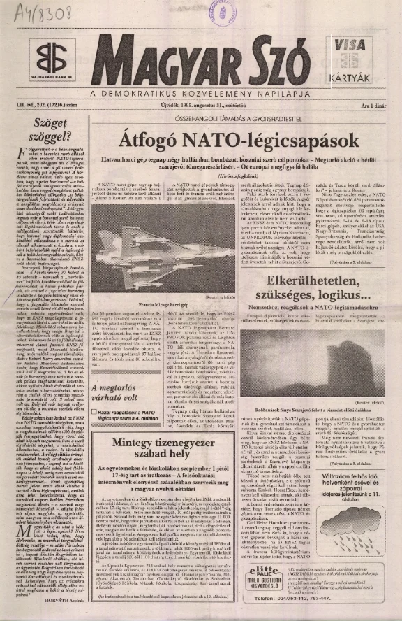 Magyar Szó, 52. évf. 1995. augusztus 31. 202. sz. 1–16. oldal