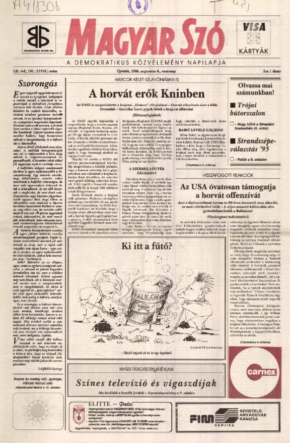 Magyar Szó, 52. évf. 1995. augusztus 6. 181. sz. 1–24. oldal