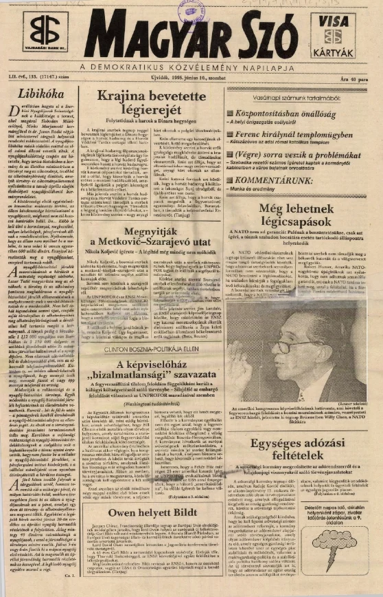 Magyar Szó, 52. évf. 1995. június 10. 133. sz. 1–16. oldal