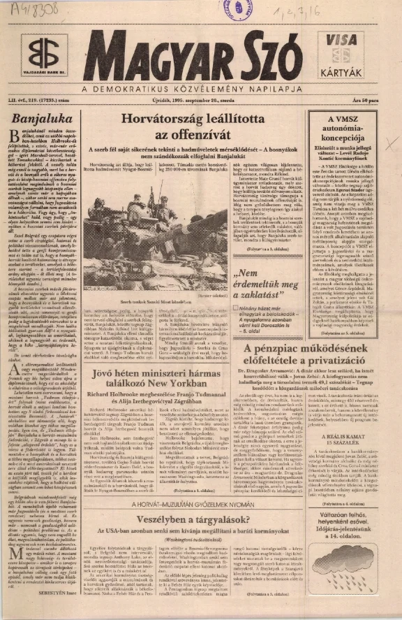 Magyar Szó, 52. évf. 1995. szeptember 20. 219. sz. 1–16. oldal