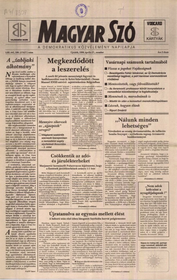 Magyar Szó, 53. évf. 1996. április 27. 100. sz. 1–16. oldal