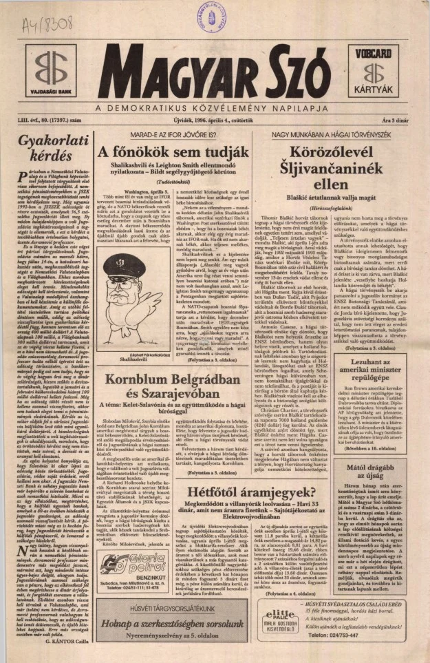 Magyar Szó, 53. évf. 1996. április 4. 80. sz. 1–16. oldal