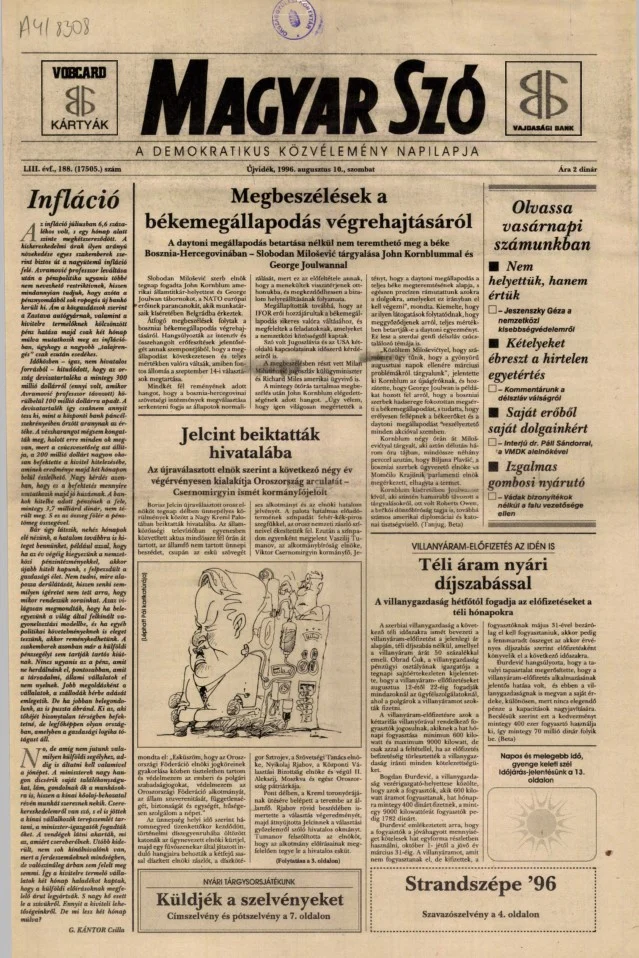 Magyar Szó, 53. évf. 1996. augusztus 10. 188. sz. 1–16. oldal