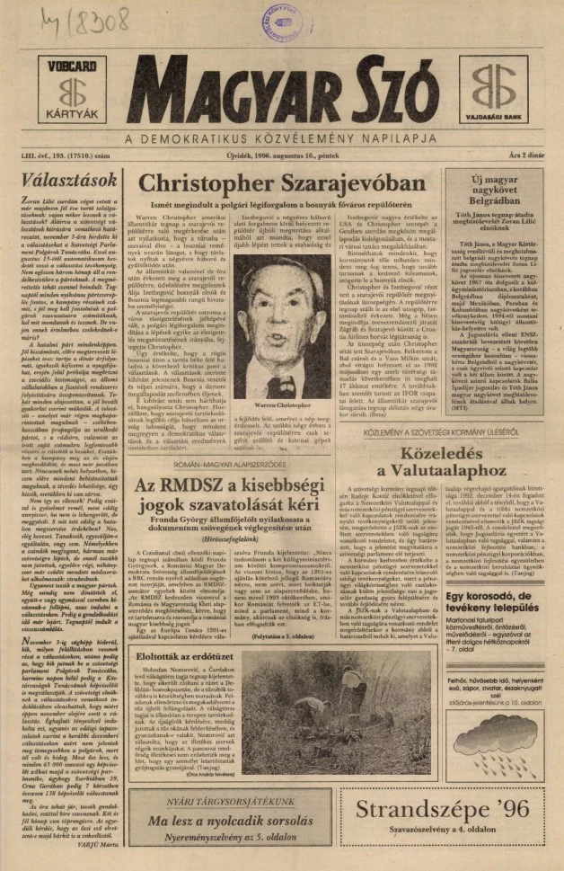 Magyar Szó, 53. évf. 1996. augusztus 16. 193. sz. 1–16. oldal