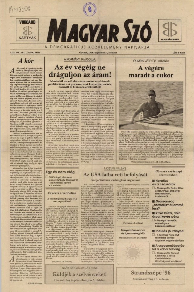 Magyar Szó, 53. évf. 1996. augusztus 3. 182. sz. 1–16. oldal