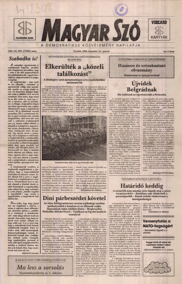 Magyar Szó, 53. évf. 1996. december 13. 292. sz. 1–16. oldal