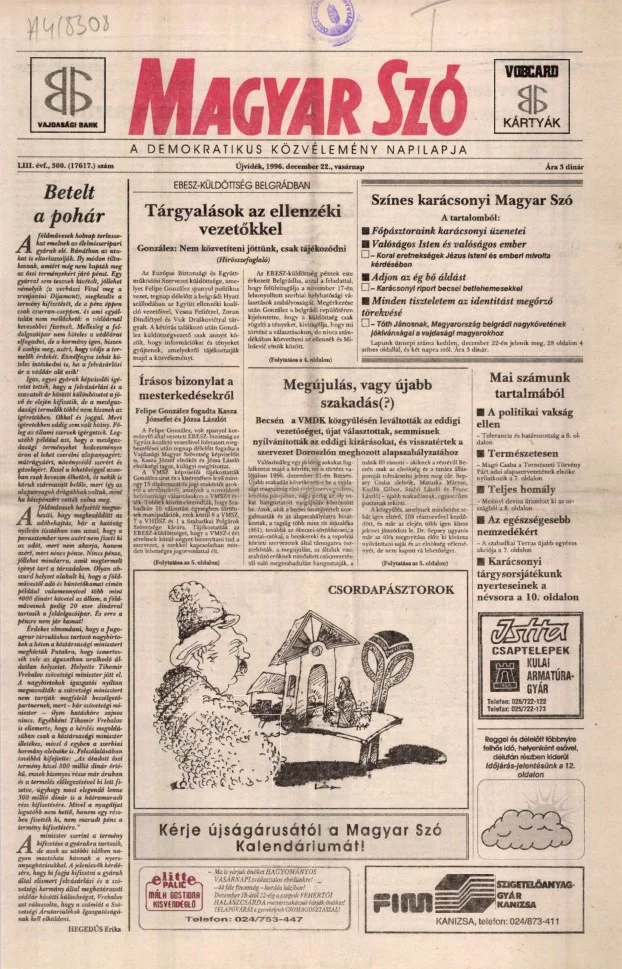 Magyar Szó, 53. évf. 1996. december 22. 300. sz. 1–24. oldal