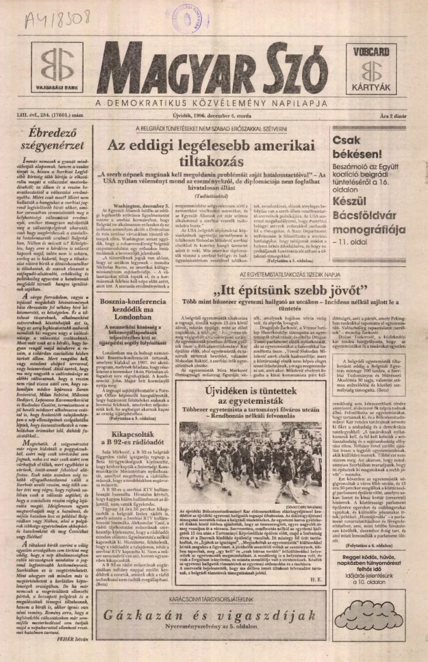 Magyar Szó, 53. évf. 1996. december 4. 284. sz. 1–16. oldal
