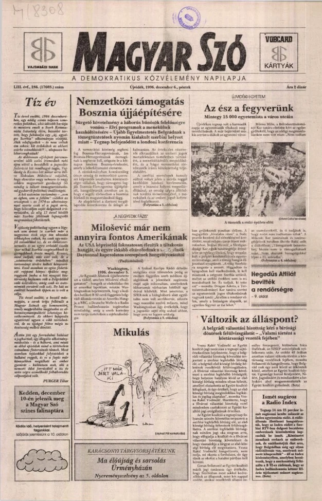 Magyar Szó, 53. évf. 1996. december 6. 286. sz. 1–16. oldal
