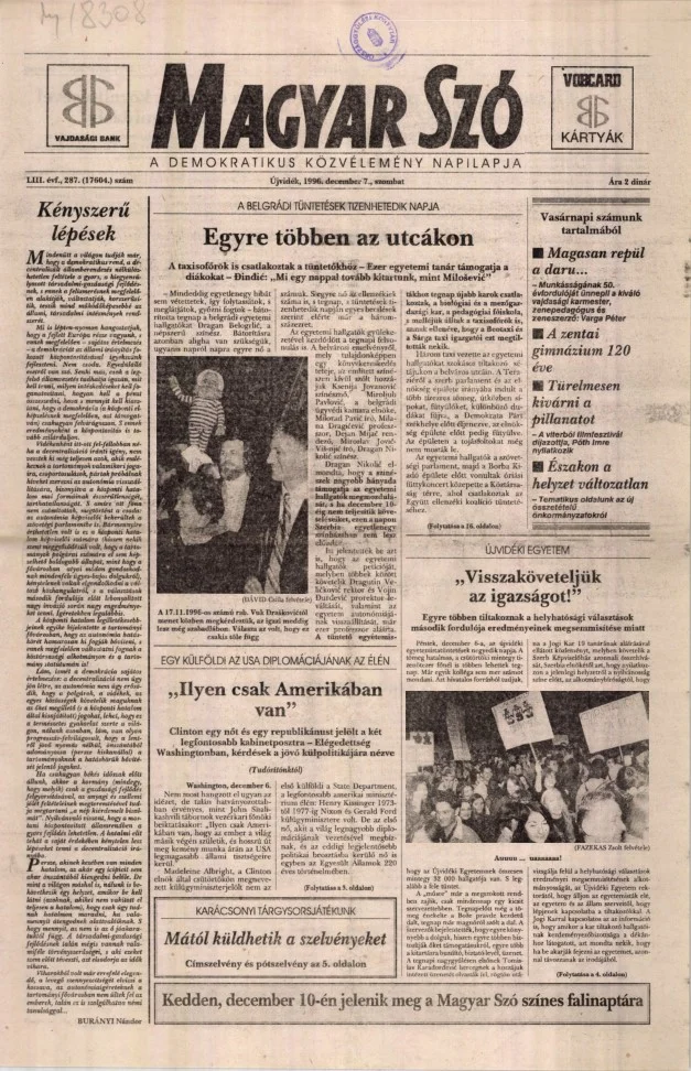 Magyar Szó, 53. évf. 1996. december 7. 287. sz. 1–16. oldal