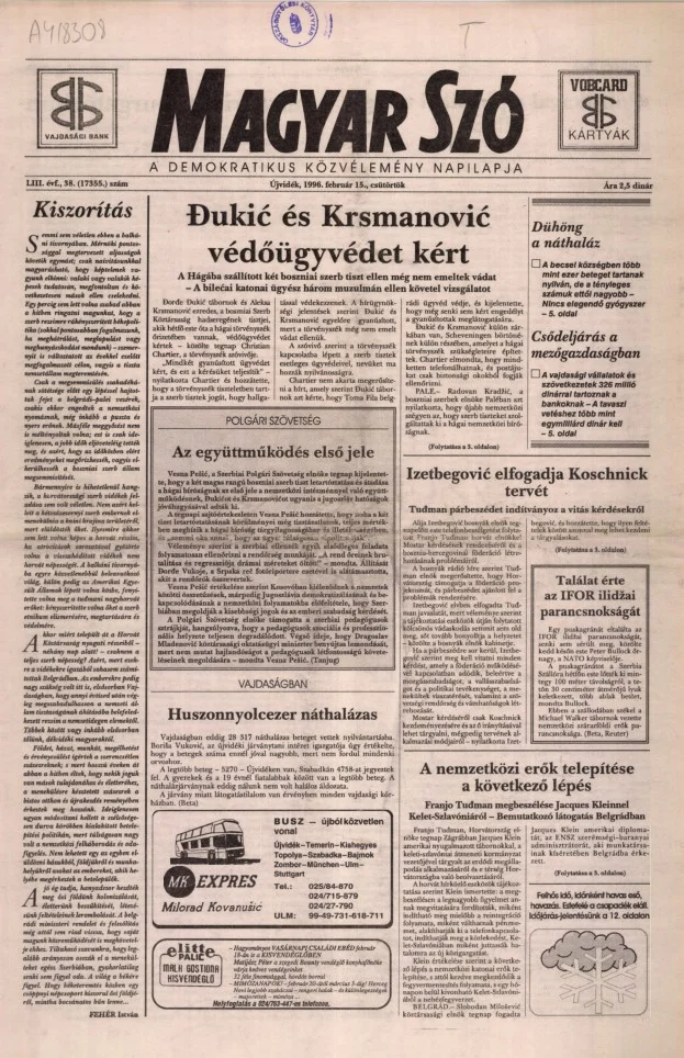 Magyar Szó, 53. évf. 1996. február 15. 38. sz. 1–16. oldal