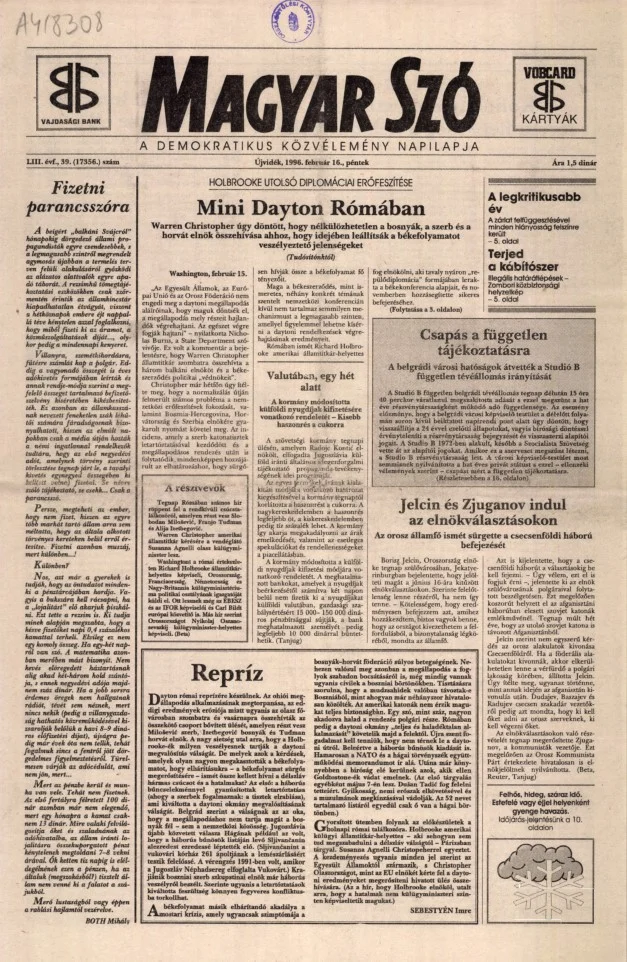 Magyar Szó, 53. évf. 1996. február 16. 39. sz. 1–16. oldal