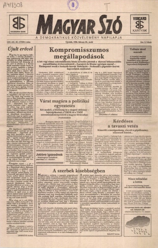 Magyar Szó, 53. évf. 1996. február 20. 42. sz. 1–16. oldal