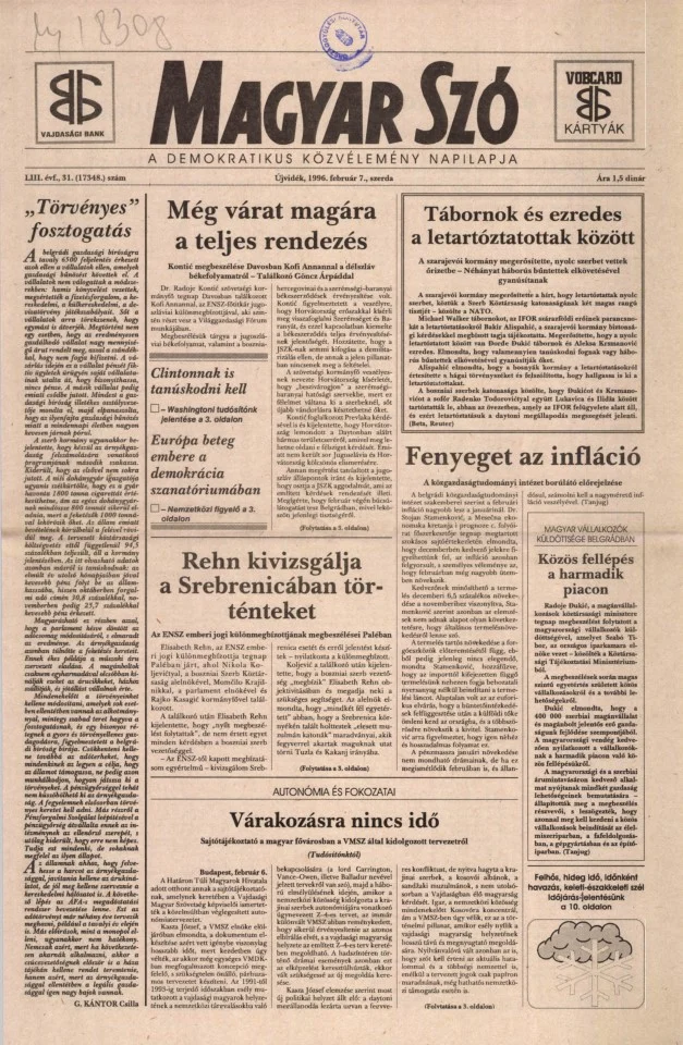 Magyar Szó, 53. évf. 1996. február 7. 31. sz. 1–16. oldal