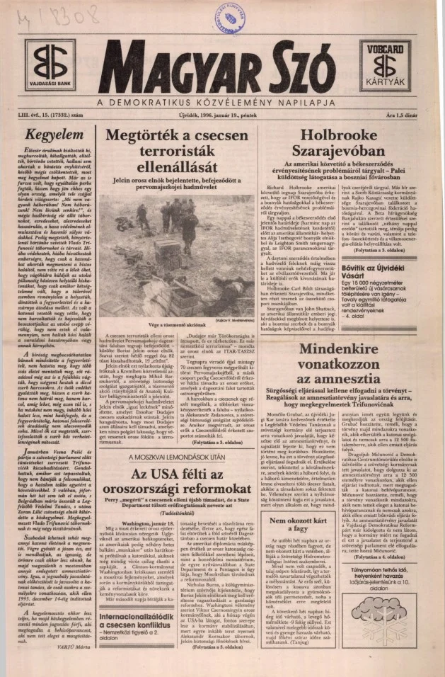 Magyar Szó, 53. évf. 1996. január 19. 15. sz. 1–16. oldal