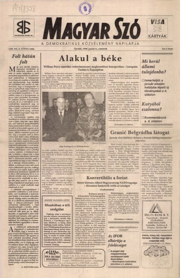 Magyar Szó, 53. évf. 1996. január 4. 2. sz. 1–16. oldal
