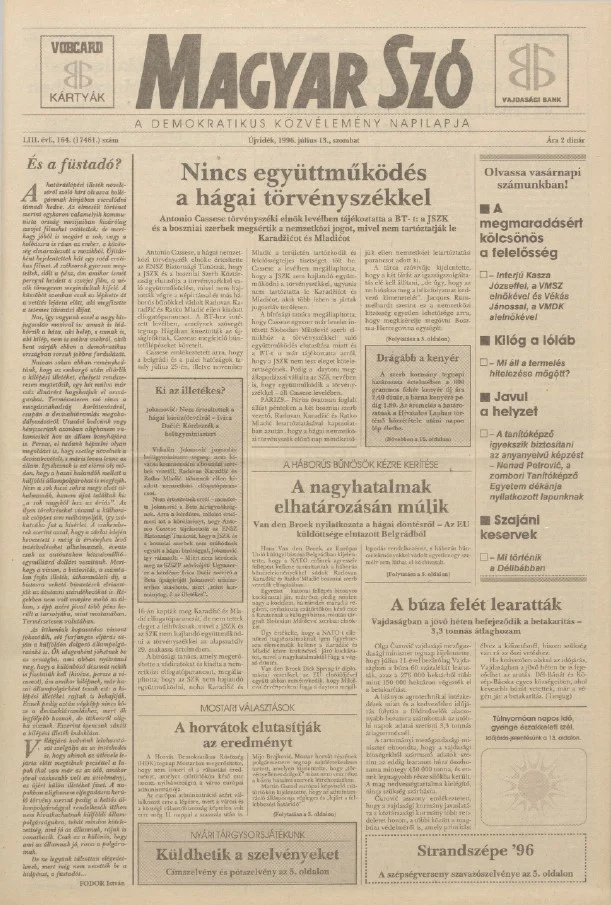 Magyar Szó, 53. évf. 1996. július 13. 164. sz. 1–16. oldal