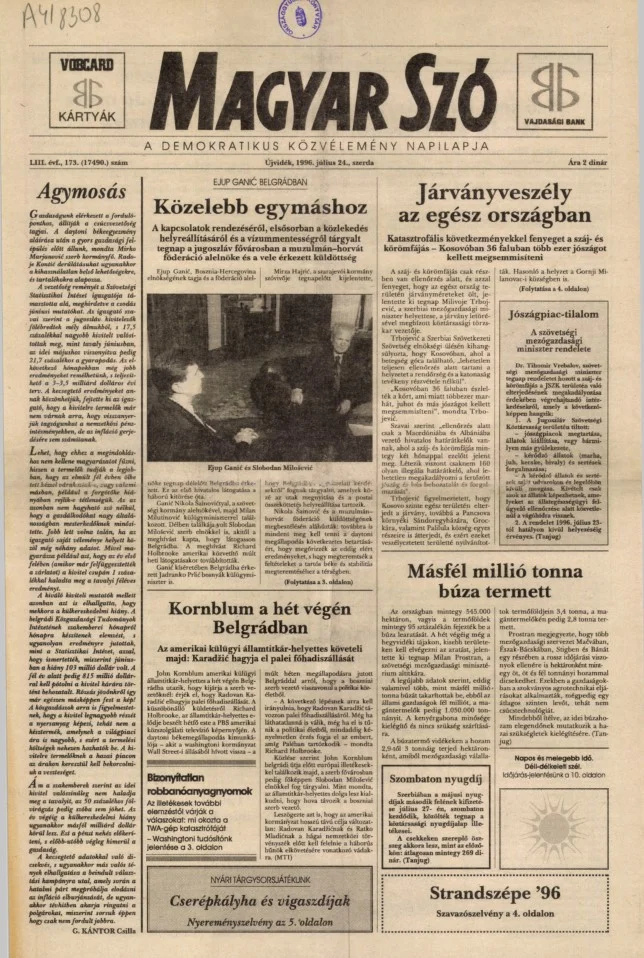 Magyar Szó, 53. évf. 1996. július 24. 173. sz. 1–16. oldal