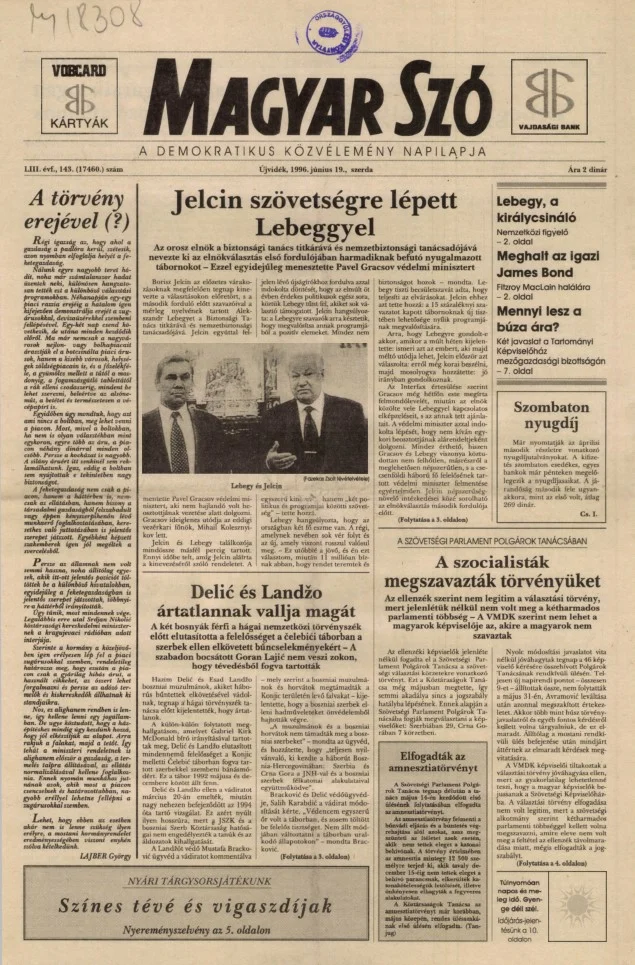 Magyar Szó, 53. évf. 1996. június 19. 143. sz. 1–16. oldal