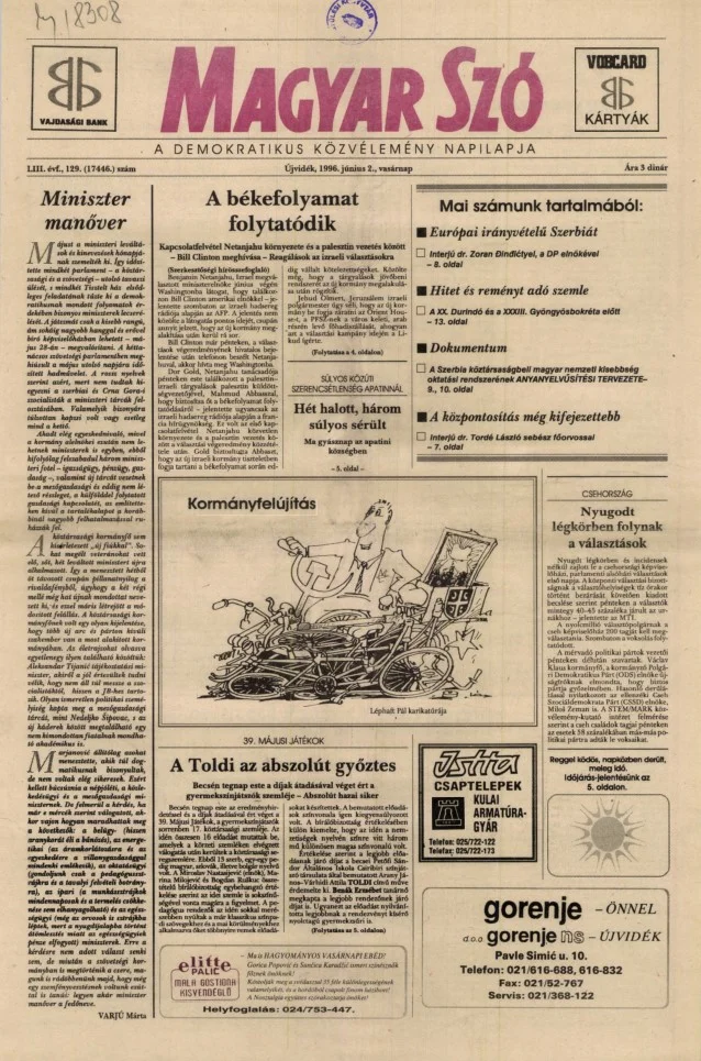 Magyar Szó, 53. évf. 1996. június 2. 129. sz. 1–24. oldal