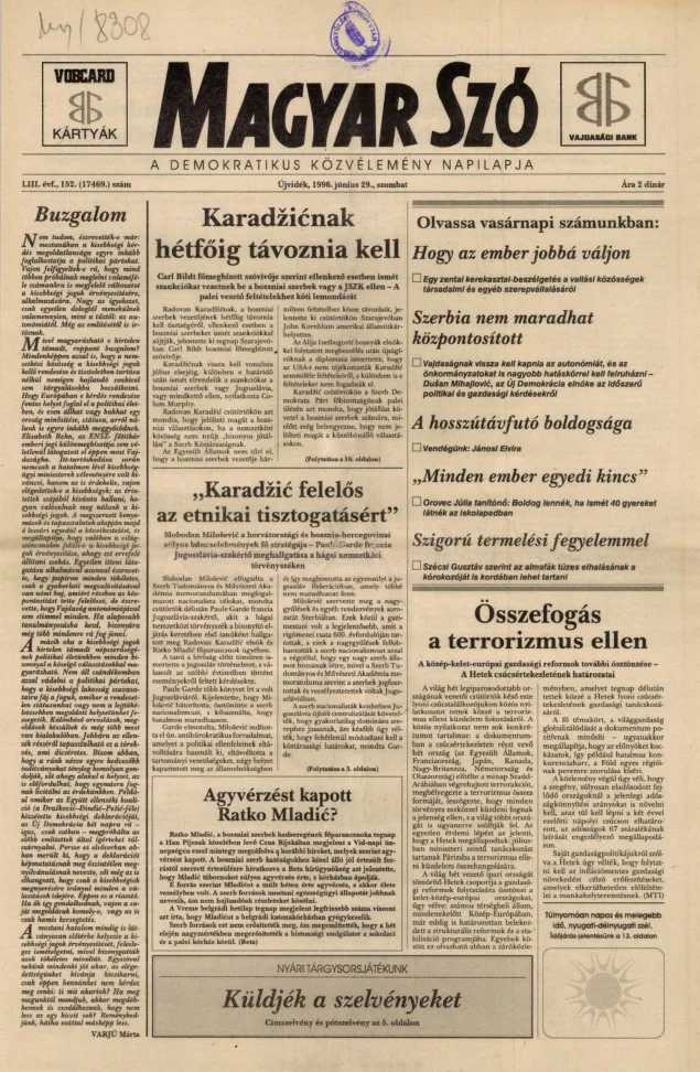 Magyar Szó, 53. évf. 1996. június 29. 152. sz. 1–16. oldal
