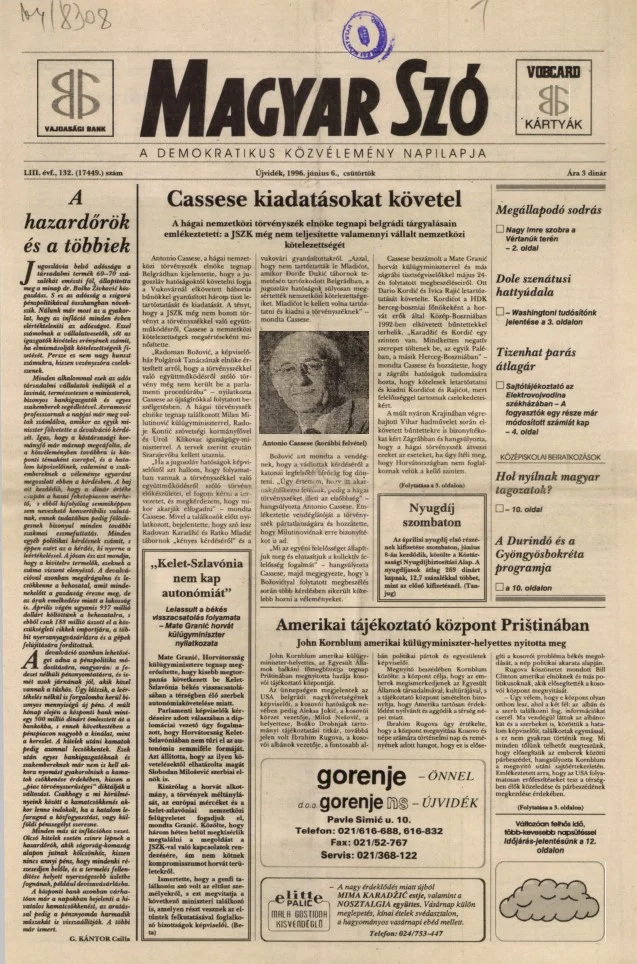 Magyar Szó, 53. évf. 1996. június 6. 132. sz. 1–16. oldal