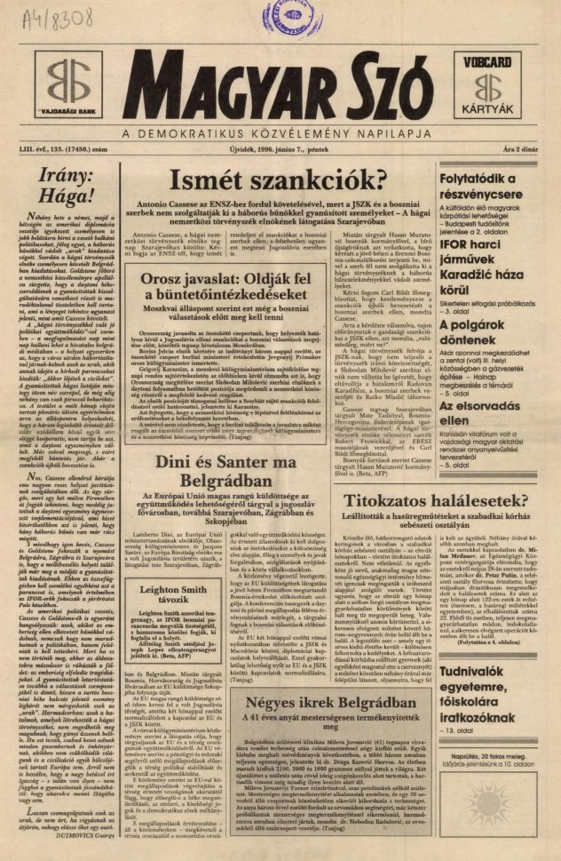 Magyar Szó, 53. évf. 1996. június 7. 133. sz. 1–16. oldal