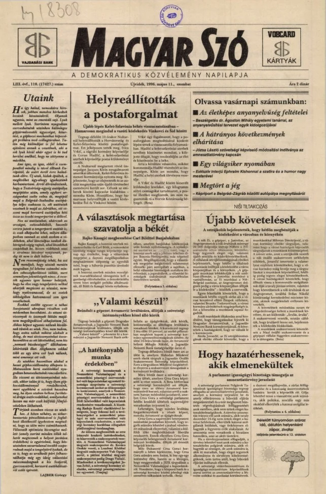 Magyar Szó, 53. évf. 1996. május 11. 110. sz. 1–16. oldal