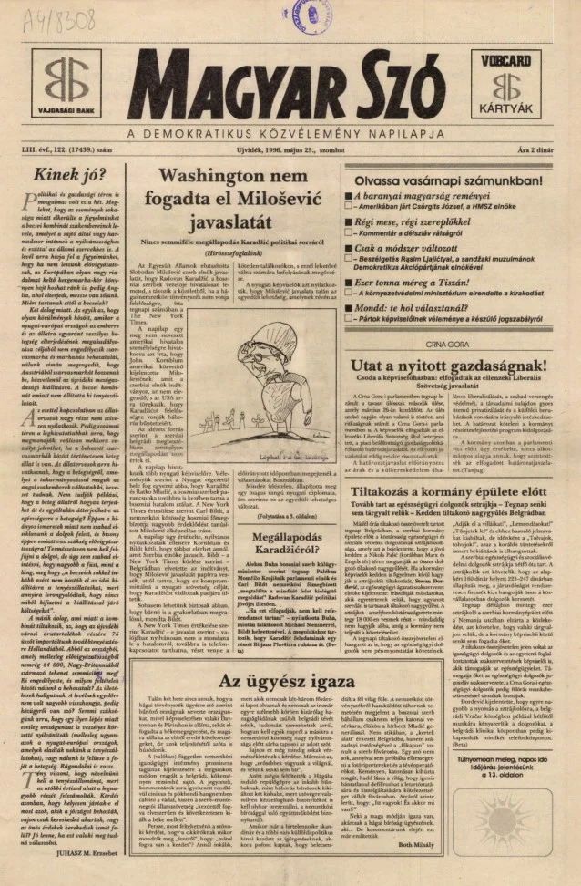Magyar Szó, 53. évf. 1996. május 25. 122. sz. 1–16. oldal