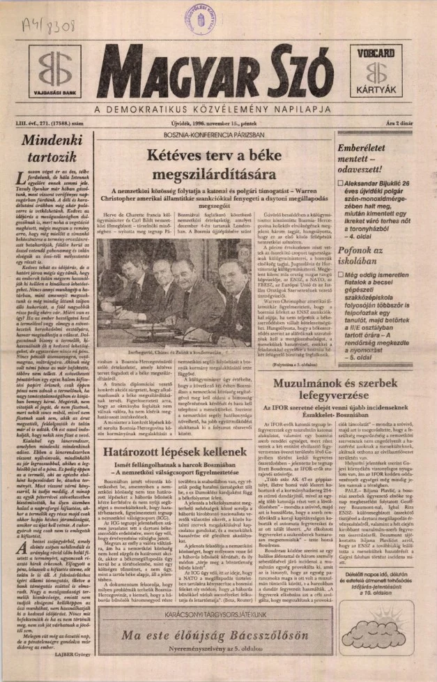 Magyar Szó, 53. évf. 1996. november 15. 271. sz. 1–16. oldal