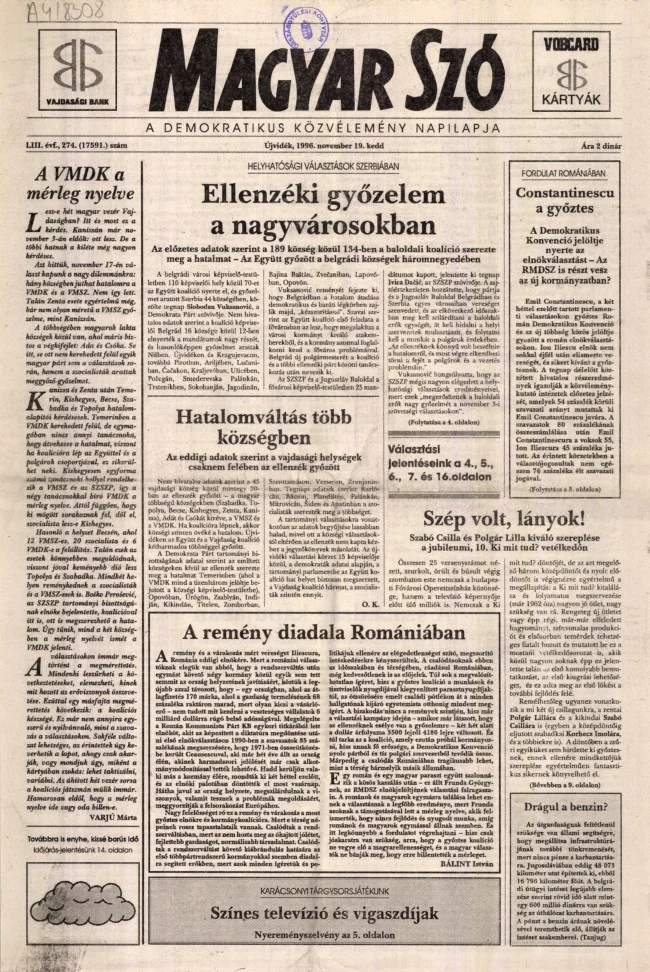 Magyar Szó, 53. évf. 1996. november 19. 274. sz. 1–16. oldal