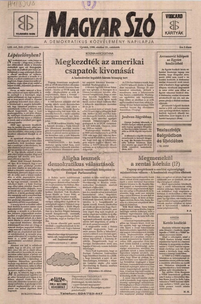 Magyar Szó, 53. évf. 1996. október 10. 240. sz. 1–16. oldal